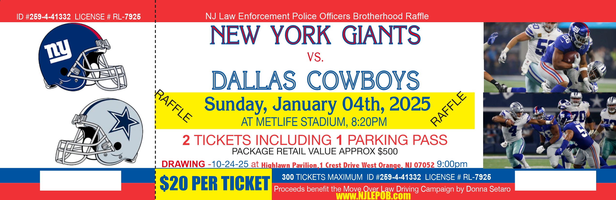 drawing to help Donna raise funds and awareness to the Move Over Law the winner of the Giants/Dallas